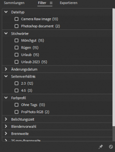 Hier hat man auch die Übersicht über angelegte Bild Sammlungen.